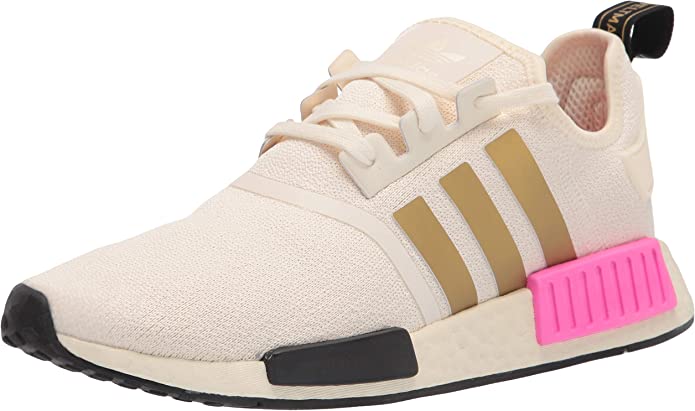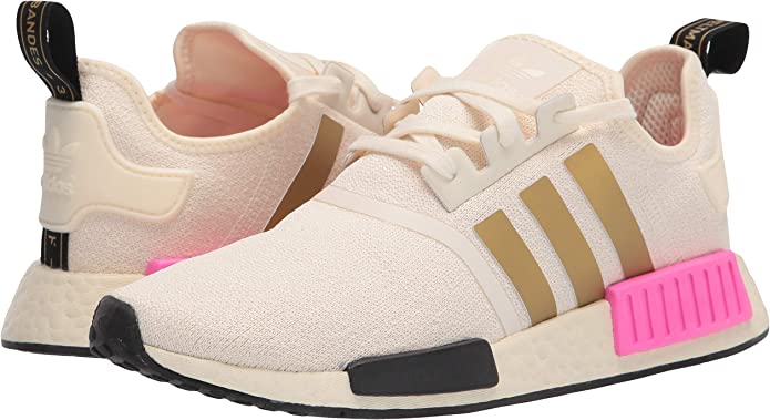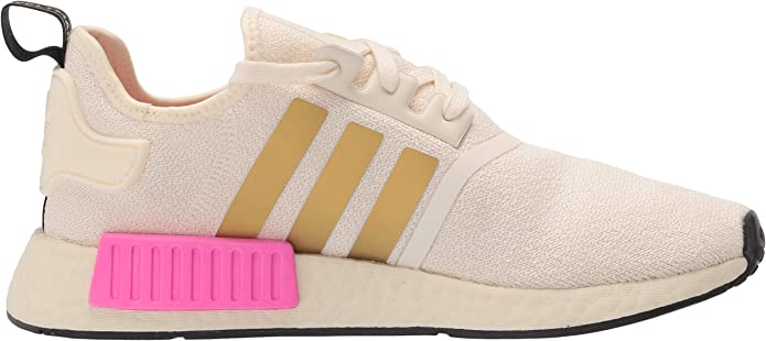 La Adidas Gold Metallic NMD_R1 es una zapatilla moderna y urbana con un estilo único. Está hecha de una combinación de materiales sintéticos y malla con las franjas laterales de color dorado metálico. La parte superior está adornada con una marca de Adidas en relieve en la lengüeta y una entresuela Boost clara para una amortiguación ligera y una suela exterior de goma para una tracción duradera.