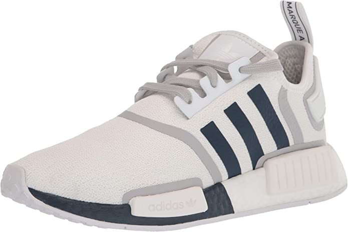 Los adidas NMD R1 Cloud White Crew Navy son una versión moderna de los clásicos zapatos de running de adidas. Están hechos de una combinación de materiales sintéticos y textiles, con una parte superior blanca con detalles en tonos negros. La suela Boost de adidas ofrece una amortiguación ligera y comoda.