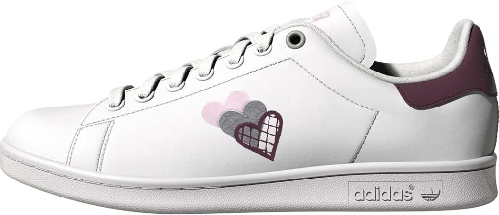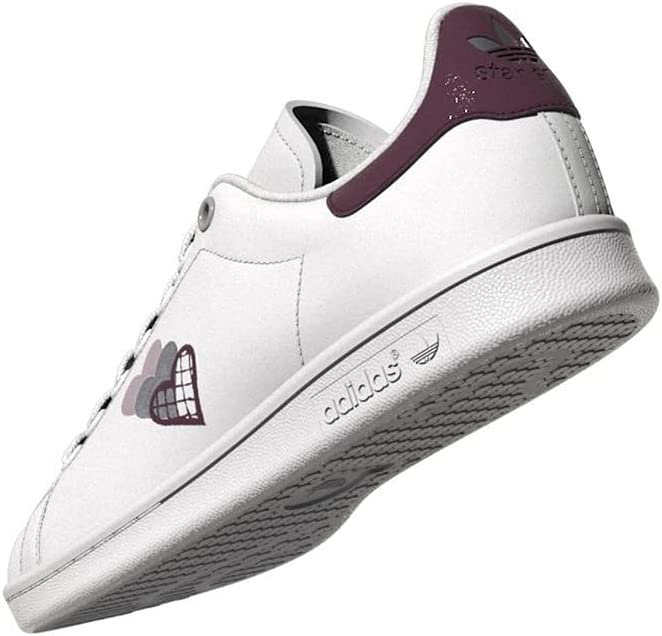 Los Adidas Stan Smith White Wine Grey Heart son una versión moderna de los clásicos zapatos de tenis Stan Smith. Están hechos de cuero blanco con detalles en tinto y rosa. El corazón tinto en el lado exterior de cada zapato es un toque único y moderno.