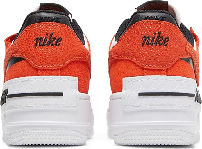 El Nike Air Force One Shadow Rush Orange es una versión elegante y moderna de la silueta clásica del Air Force One. Cuenta con una parte superior de color naranja brillante con una entresuela blanca y detalles en negro. La parte superior está hecha de una combinación de cuero y materiales sintéticos, y la entresuela está equipada con la amortiguación Air característica de Nike para una comodidad superior. El zapato también cuenta con un sistema de cordones único y una lengüeta acolchada para mayor comodidad. El Nike Air Force One Shadow Rush Orange es una excelente opción para los fanáticos de la moda.
